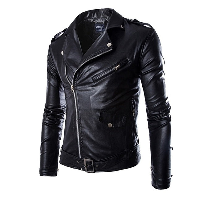 Leather Solid Zipper Slim Motocycle Jacket for Men
