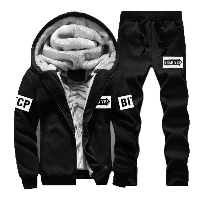 Tracksuit Men Sporting Fleece Thick Hooded Jacket