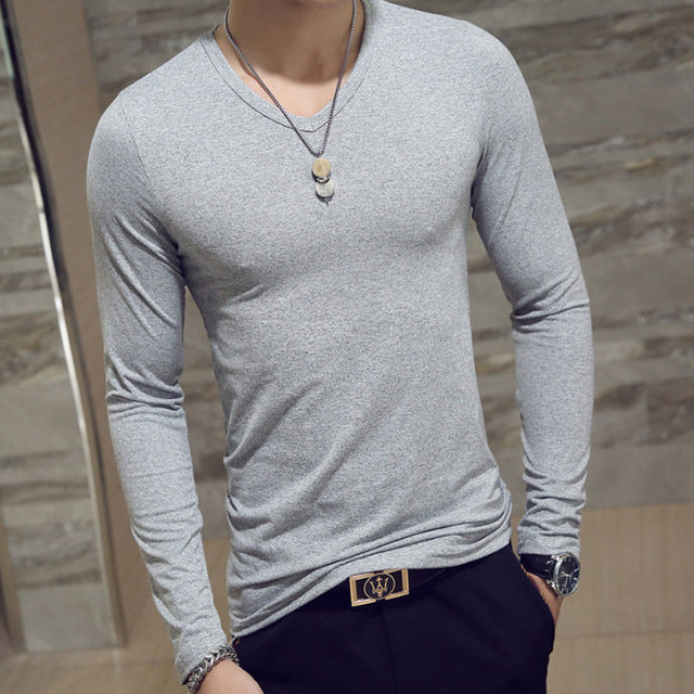 Stay stylish and look smart wearing this t-shirt having v-neck and slim long sleeves. Its solid pattern t-shirt made with thick and wan fabric making it reliable to be wear for autumn and winter season. This t-shirt is suitable for casual, daily wear, working out, business conversation and home wear, casual and fashion, formal work, everyday casual wear, party, friends and boyfriend. It is the unique and special style t-shirt, when you wear this v-neck pullover slim fit casual t-shirt, you'll get more compliments. Best gifts for your friends or yourself.