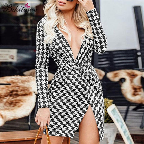 Brief Slim Deep V-neck Women Party Mini Dresses