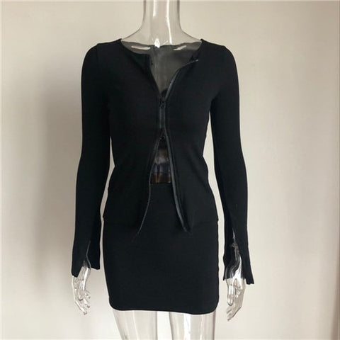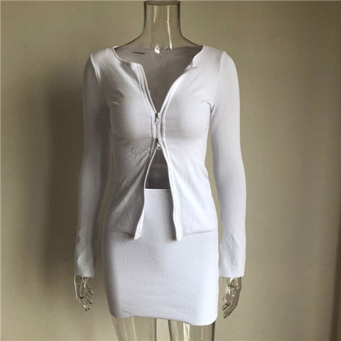 Soft fabric and comfortable to touch, stretchy, elegant, sexy two-piece outfits, slim clubwear. Ribbed Tops and skirts set features with a V-neck, double zipper, full sleeve, zipper closure, elastic waist, above knee skirts, it so sexy, soft and comfy to wear. A sexy and elegant outfit, great to pair with heels and flats. Suitable for night outs, parties, dancing or just wear it every day! Be ready to get compliments with this curves hugging crop top and mini skirt outfit.