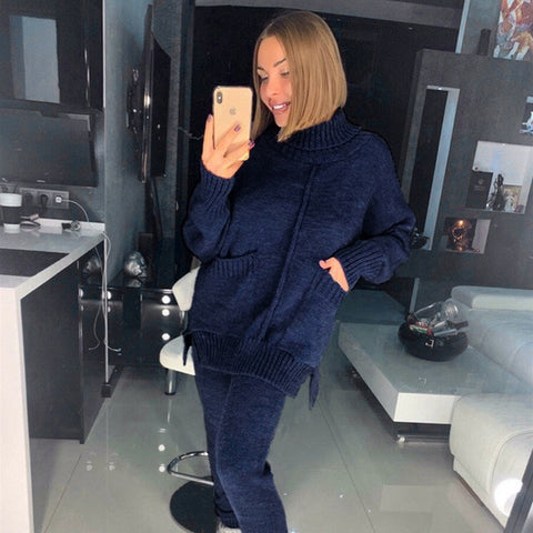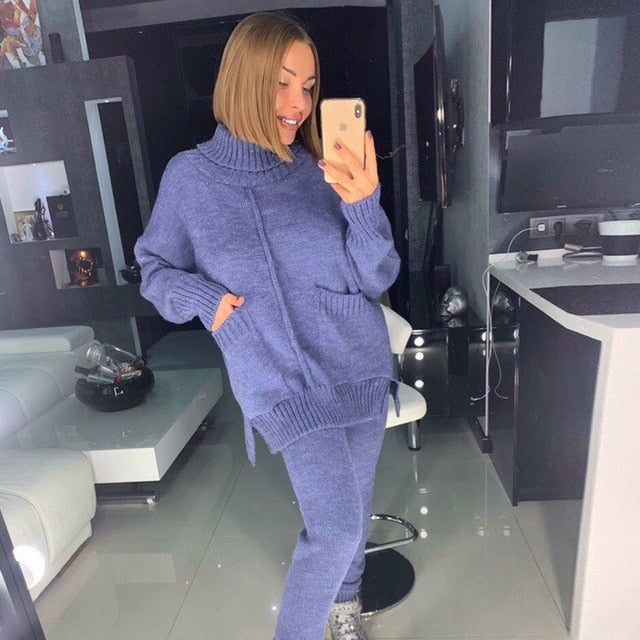 Look more stylish and pretty wearing this mid lined split pockets sweater + pant suits. It's a fashion sweater for women having turtleneck collar neck and full sleeves with the solid pattern. Its made with warms and thick fabric designed in a stylish way to make you look stylish and keep you warm in colder days. You can wear it for casual and daily outgoings. You'll be happy to have this in your closet on those cool and chilly days. It’s a beautiful sweater to make you look like a beauty queen. Elegant women sweater + pant suits is perfect to be wearing for casual or special events.