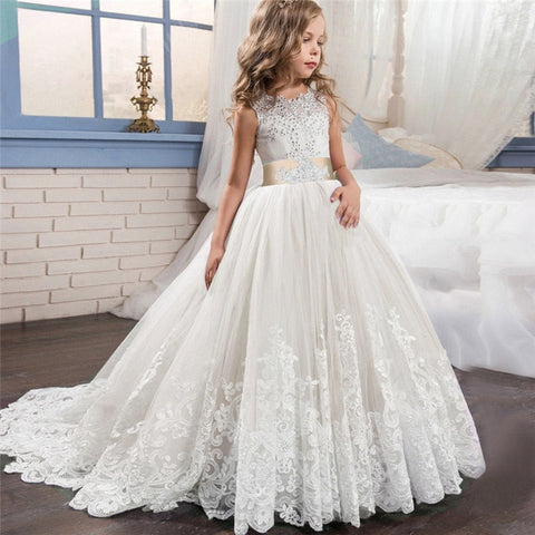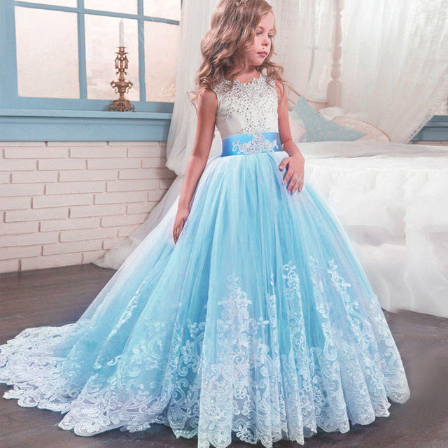 This is made of gorgeous princess pageant long dresses for girls, faux rhinestones and fabric bowknot on front lace floral bodice and waistline, Lace and bowknot with rhinestones are found on the front bottom of the dress as well as the small train on the back. Have on this dress your daughter, and she feels like a princess. It is perfect and useful for birthday party gown, dancing, pageant, Halloween costume, New Year, birthday, Coplay, wedding evening ball gown Prom, stage performance, photo prop photography gift, other special occasions, and casual daily wear. It is the best gift for your princess, niece, granddaughter, family child, best sister baby, and your friend elf. If your baby will wear it, I'm sure she will get plenty of compliments on it in public.